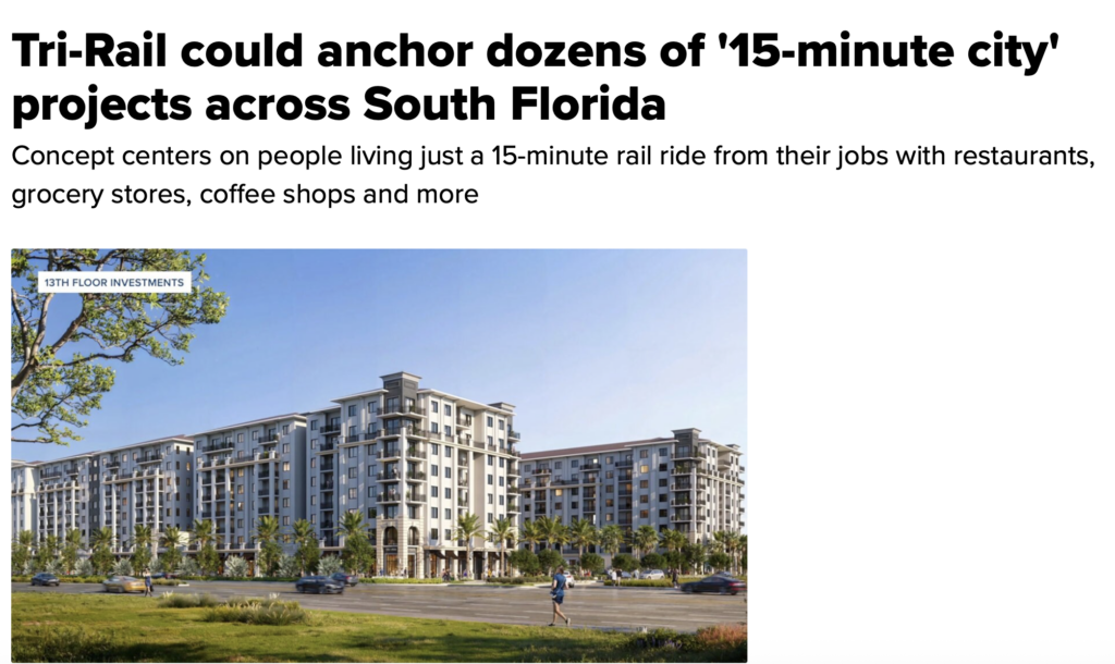 In South Florida, Tri-Rail is anchoring dozens of high-density 15-minute developments stretching from West Palm Beach to Miami.