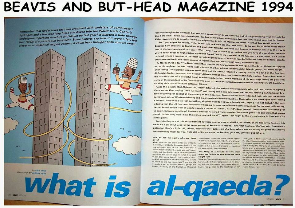 An eerie 1994 article taken from Vice magazine has surfaced, which shows Beavis & Butthead dressed as Al Qaeda operatives flying planes into the twin towers.