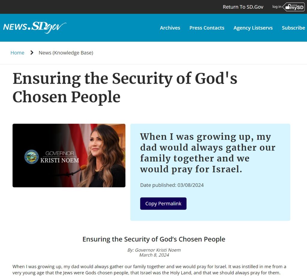 South Dakota Gov. Kristi Noem heeded the call and without any care for the First Amendment signed the “strongest” hate crime bill in America into law to “stop antisemitism” and “ensure the security of God’s chosen people.”