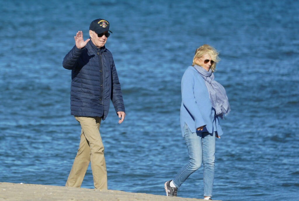 In a video, Biden and First Lady Jill Biden are seen strolling the Atlantic beachfront on Sunday, with a reporter off-screen asking about the release of Americans held hostage by Hamas terrorists. Biden waves at the reporter but doesn’t stop to answer questions, continuing his cheerful walk along the seaside.