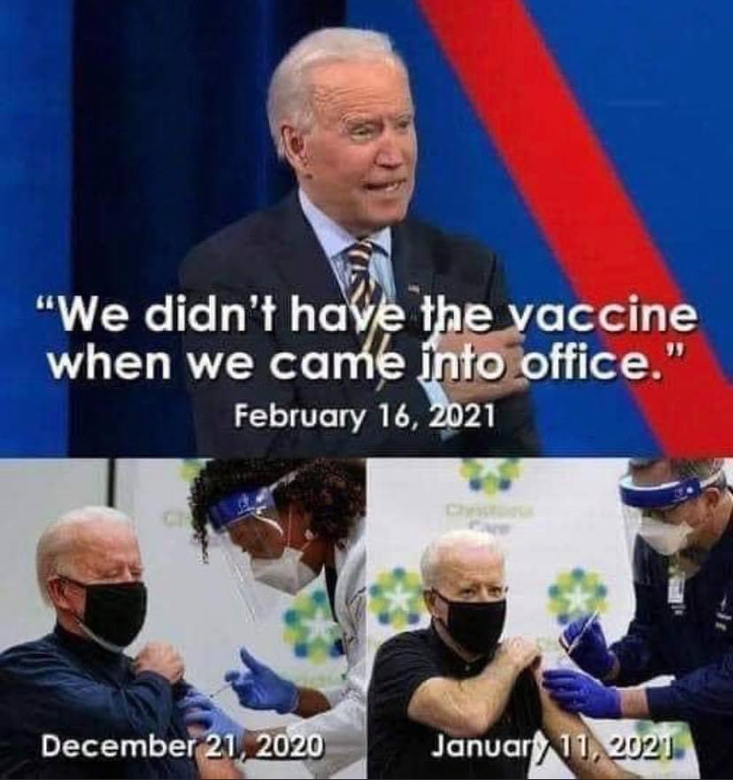 “I saw that he said there was no vaccine before he came into office and yet he got a shot before he came into office,” Trump said.