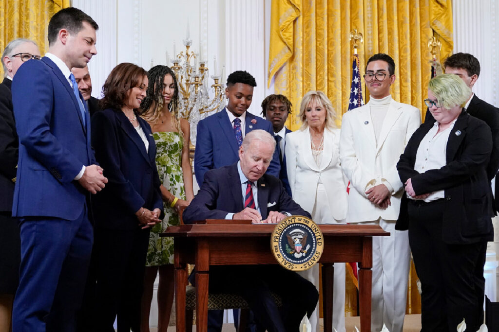According to the WH announcement, this sweeping order comes, in part, because of “over 300 anti-LGBTQI+ laws” that have been introduced in Republican-led states “over the past year.” Unbelievably, the “fact sheet” baselessly alleges that these laws “specifically target” trans children and are effectively a form of “hateful” bullying on the part of said state legislatures.