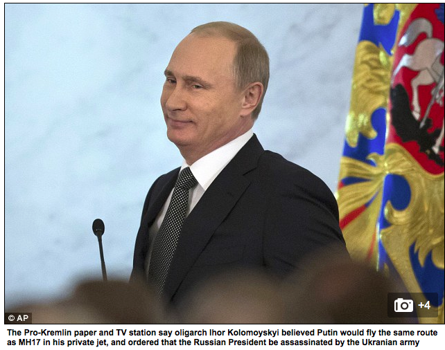 The Daily Mail today published a story called, “MH17 ‘was shot down in botched bid to assassinate PUTIN’: Pro-Kremlin media names Ukrainian air force pilot who they allege downed craft”[1]. Writer Will Stewart says: