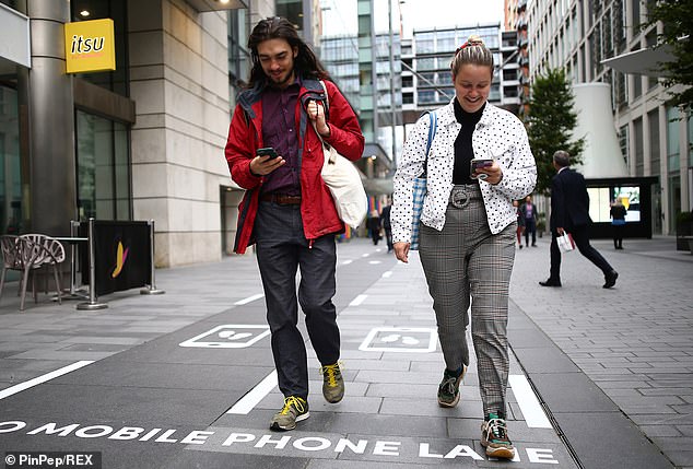 It is now hoped the designated pathway for pedestrians will help stop people who walk with their eyes glued to their mobile phones from bumping into each other.