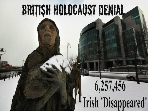However, it wasn’t due to the failed potato crop that led to the deaths of so many people, but the imposed English rules placed on the Irish that saw them being treated like slaves by English rulers, and prevented them from accessing other forms of food that would have prevented their deaths. The English were responsible for an Irish holocaust.