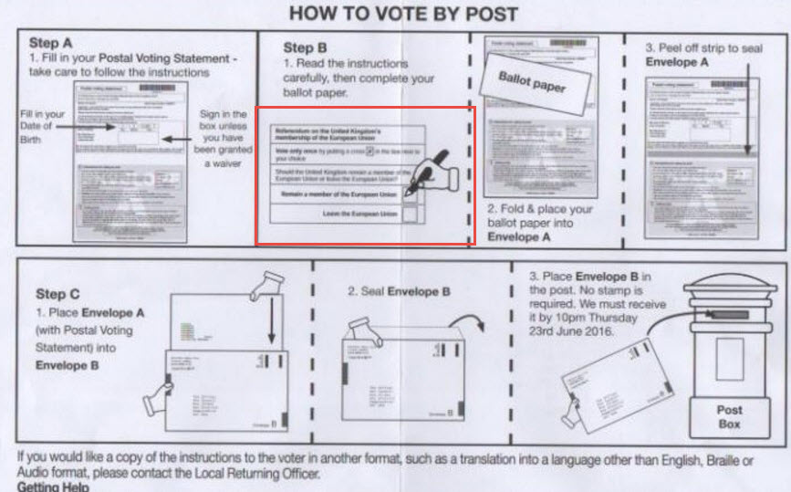 Outraged citizens in the UK have reported that postal ballots for the upcoming in-out referendum are fraudulently dissuading voters from voting for a Brexit outcome.
