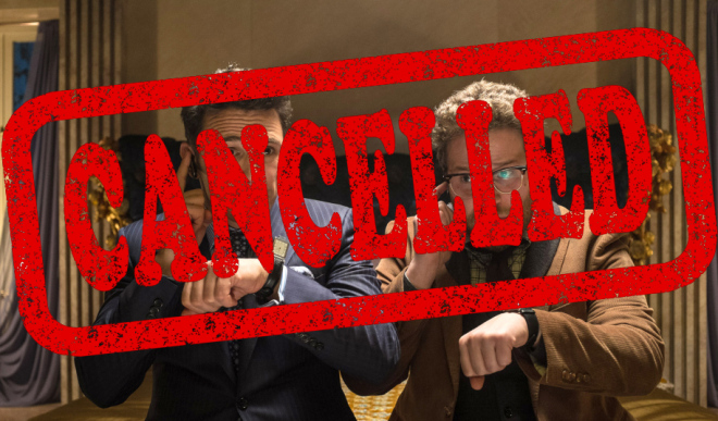 Earlier Wednesday, Regal Cinemas, AMC Entertainment and Cinemark Theatres — the three top theater chains in North America — announced that they were postponing any showings of The Interview, a comedy about a TV host (James Franco) and producer (Seth Rogen) tasked by the CIA to assassinate North Korea leader Kim Jung-un (played by Randall Park).