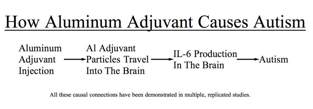 Aluminum adjuvants, given early and continually, stimulate immune activation event after immune activation event, raising levels of IL-6 in pre- and post-natal brains, leading to chronic inflammation and dysregulation of neuronal circuitry and the symptoms associated with autism.