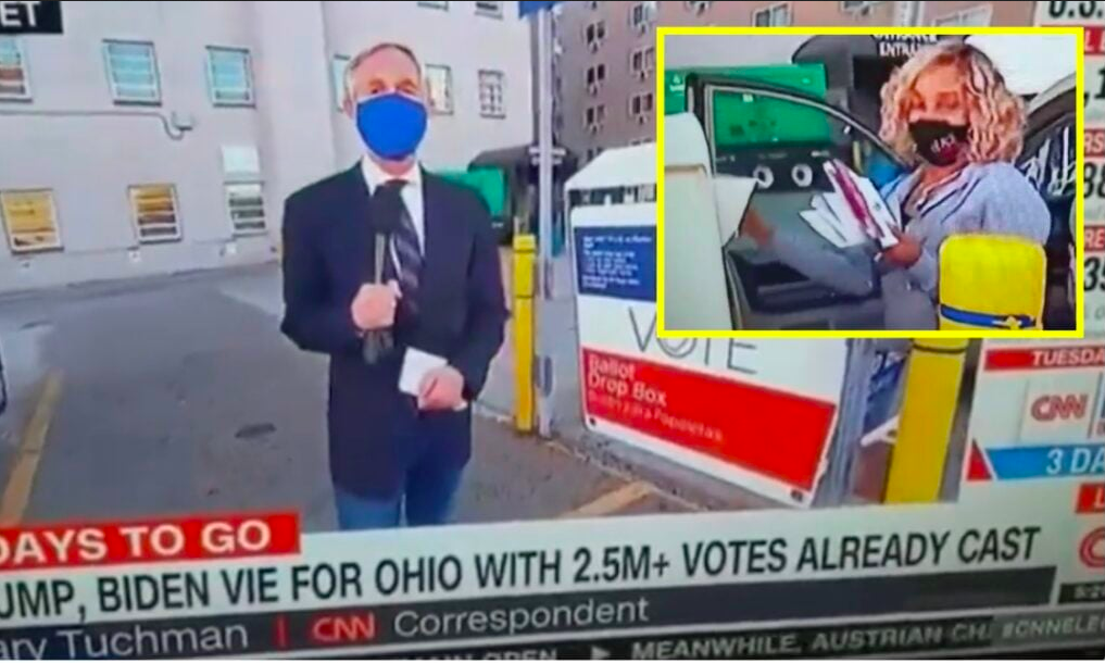 CNN’s news cameras caught the masked woman in Ohio stuffing a ballot box on live TV during the 2020 Presidential Election, which CNN and other corporate media outlets claim was “safe and secure” and not riddled with unprecedented levels of fraud from both government officials and paid political hacks.
