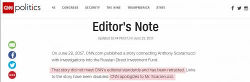Scaramucci disputed the story, and CNN eventually retracted it, saying only that it did not meet its rigorous ethical standards.