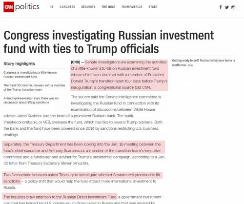 The initial story, written by none other than Pulitzer-Prize-winning reporter Thomas Frank, claimed that “Congress was investigating a Russian investment fund with ties to Trump officials.”