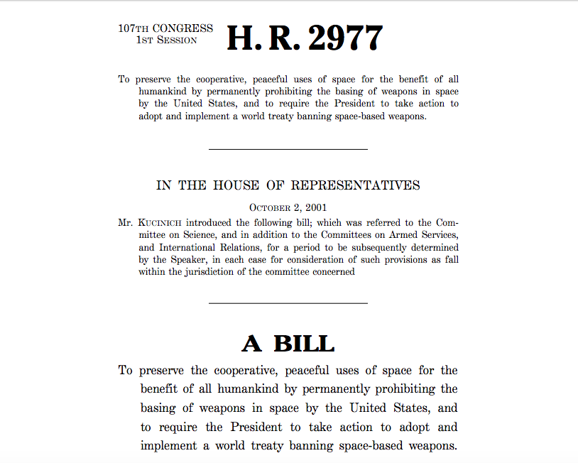 Congress has published details of a bill proposed by Dennis Kucinich that openly admits of the existence of chemtrails.