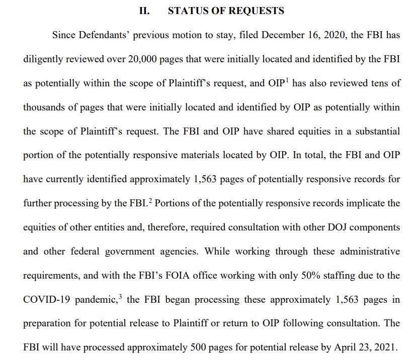They now are saying they have 1,563 pages of responsive information that they need more time to sift through: