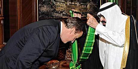 Yet here he is with the King of Saudi Arabia (pictured above) – one of the most autocratic and repressive states in the world.