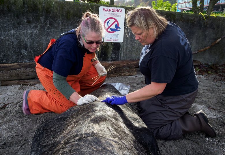Officers from the National Oceanic and Atmospheric Administration are investigating the mysterious killings, which are against the law under the US Marine Mammal Protection Act.