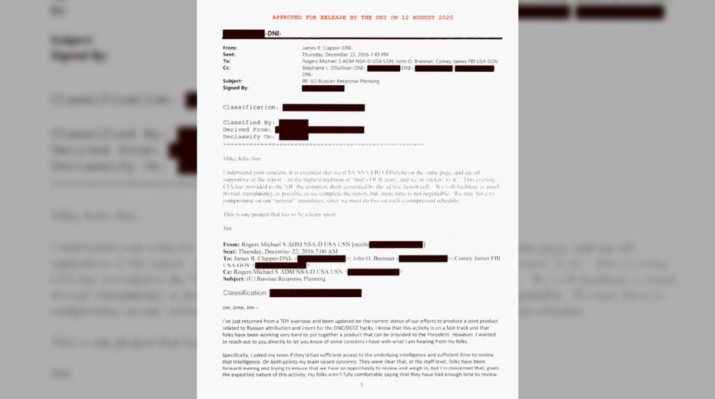 RT reports: The top-secret correspondence, released on Wednesday, shows former DNI James Clapper directing intelligence chiefs to “compromise on normal” procedures to rush a politicized 2017 Intelligence Community Assessment (ICA), despite concerns from then-National Security Agency (NSA) Director Mike Rogers.