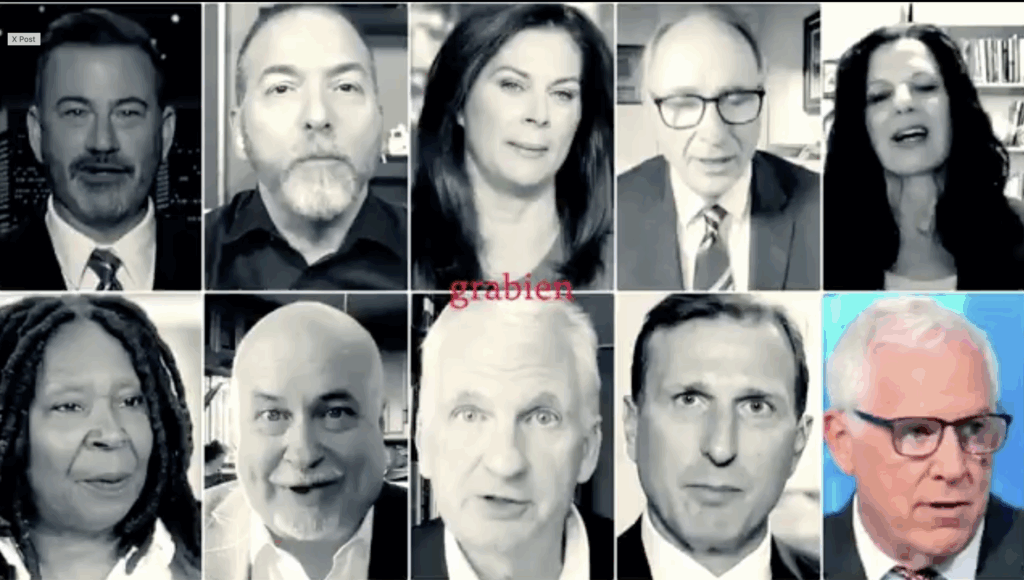 “New talking point directive just issued,” journalist Tom Elliott wrote on X, accompanying a montage video showing leftist media puppets, from Jimmy Kimmel to Whoopi Goldberg, reading from identical scripts in a coordinated misinformation and disinformation campaign.