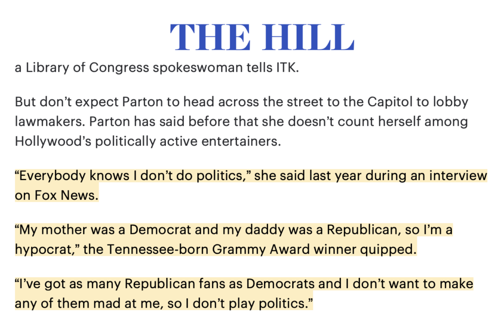 For years, interviewers have tried to pin Dolly Parton down on her politics—pushing her to criticize Donald Trump or pick a side. But she’s never taken the bait.