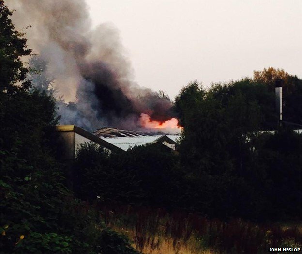 Four fire crews are at the scene of the blaze, which broke out at about 19:00 BST in Moss Brook Road in Harpurhey..