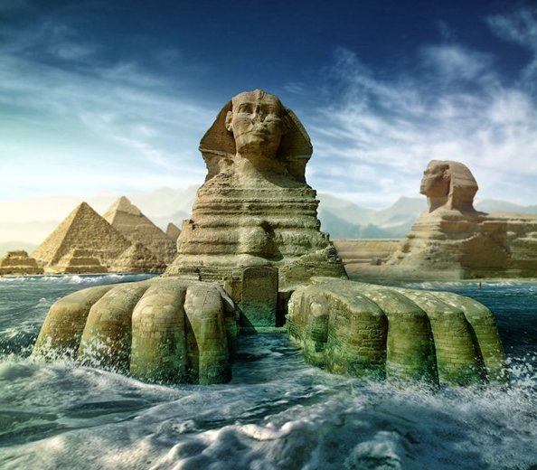 There is a school of thought that believes the pyramids and sphinx are much, much older than the normally quoted few thousand years – and that they are, in fact, 10,000 years old or more. According to the website “The Atlantean Conspiracy”, “The Sphinx, which Egyptologists say is less than 5,000 years old, is actually at least 10,000 years old based on its weathering alone.