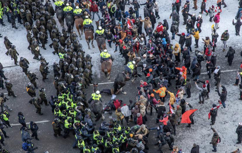 An elderly woman with a walker who was protesting peacefully and chanting “Peace, love, and happiness” has been trampled near to death by Ottawa police as the situation on the ground continues to deteriorate.