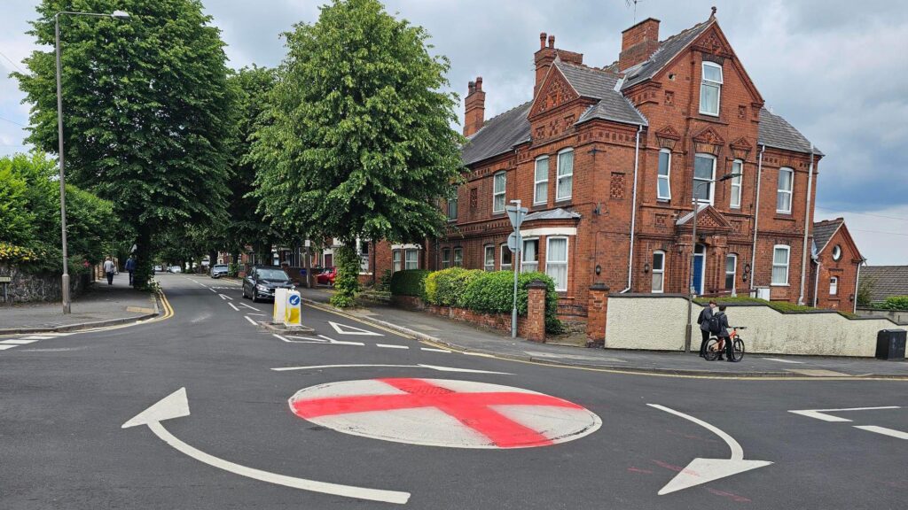 St George’s crosses have also appeared painted on roundabouts!