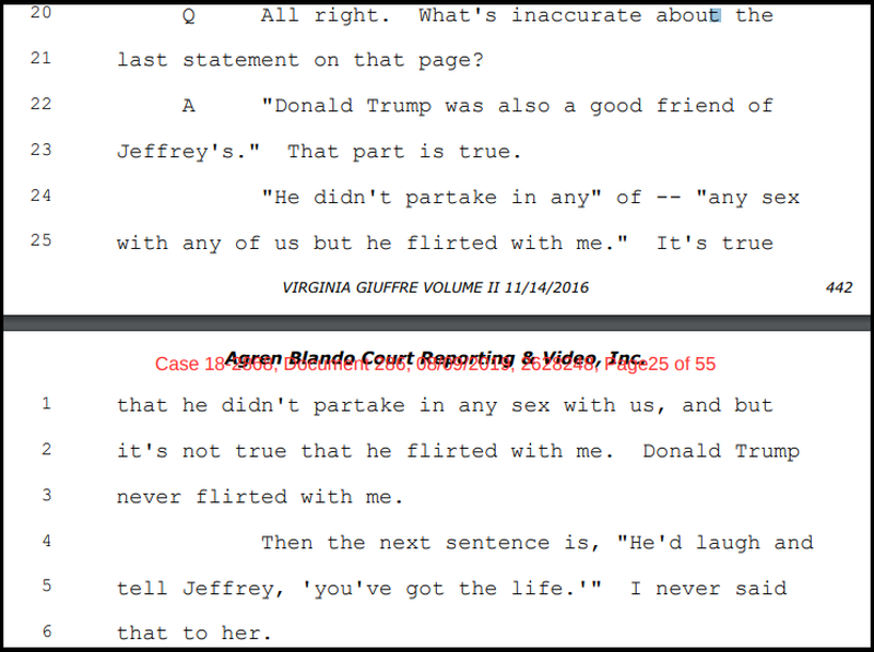 New court documents released by the US Court of Appeals reveal that Epstein accuser Virginia Roberts Giuffre said Donald Trump “didn’t partake in any sex” with Epstein’s girls.