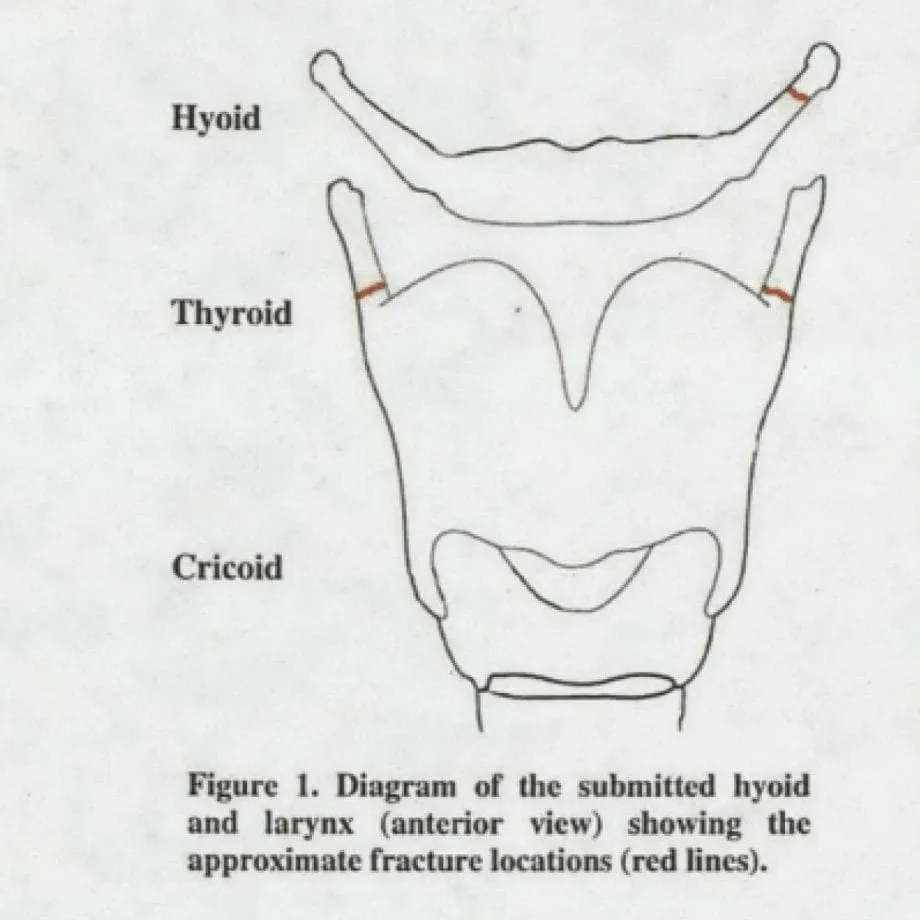Dr Sampson disagreed with this, saying that fractures of the hyoid bone and the cartilage were seen in both suicides and homicides.