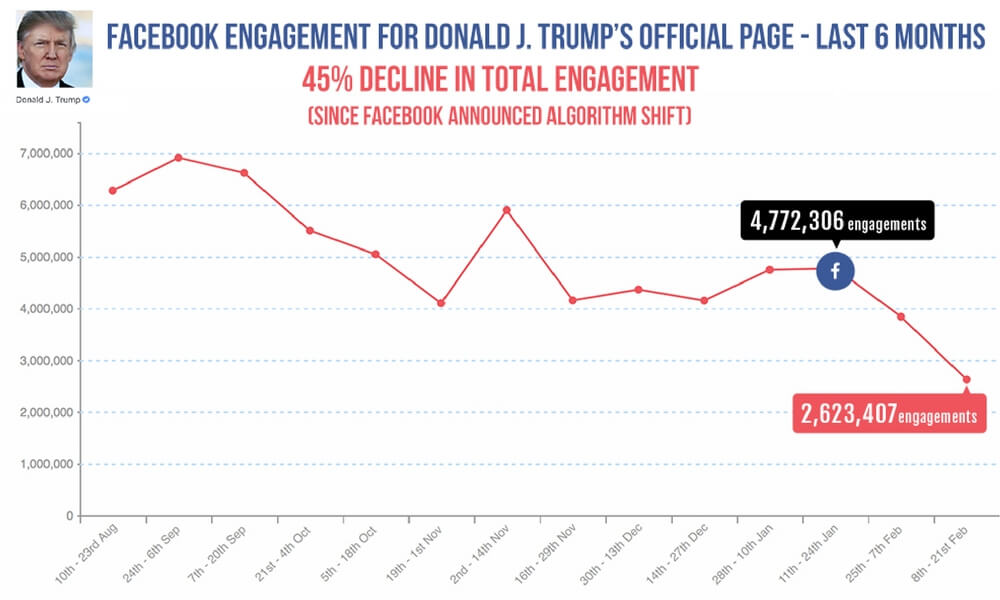 Before the algorithm change, Trump made 67 posts in 13 days without a drop in engagement.