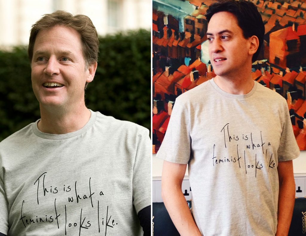 The deputy prime minister and the leader of the opposition (usually not one for photo-ops) have both posed in the Fawcett Society’s “This is what a feminist looks like” T-shirts for the December issue of Elle Magazine.