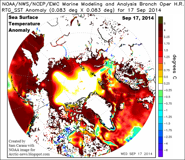 (Arctic News) – For the first time in thousands of years, warm water is flowing into the Arctic Ocean. Warm water from the deep ocean is showing up on surface images. There is no way to put this into the context of ‘normal.’ Historic temperatures have kept the Arctic frozen on an even keel for thousands of years. Even if there was a ‘natural cycle’ it has been completely overridden by the astonishing amount of pollution that is going into the atmosphere.