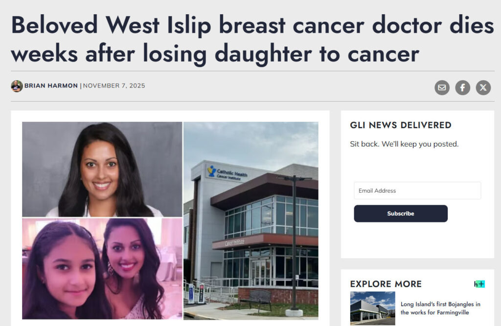 Dr. Shridevi Singh, a 41-year-old breast cancer surgeon, died suddenly on November 5, 2025—just weeks after her 15-year-old daughter Haley passed away from an incredibly aggressive case of Acute Lymphoblastic Leukemia.
