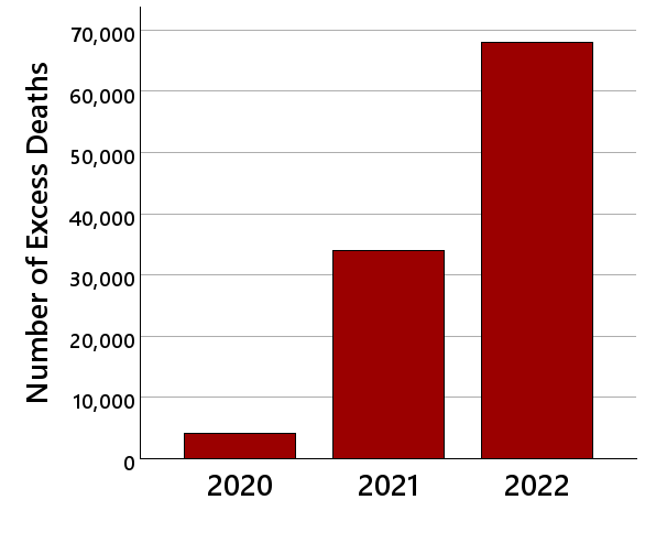 The fact that particularly high excess mortality occurs both in regions and in time windows in which many vaccinations took place provide strong correlational evidence that the vaccinations may have had a negative effect instead of a positive effect.