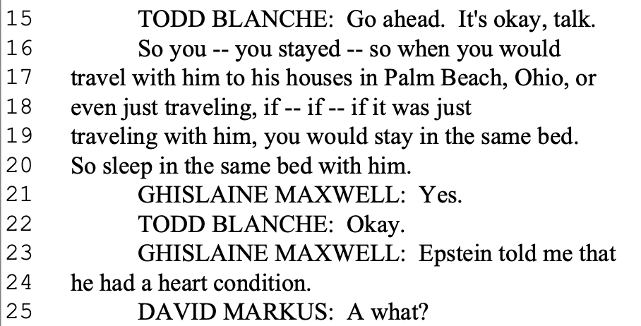 Newly released transcripts of Justice Department interviews with Ghislaine Maxwell show the convicted sex trafficker attempting to rewrite history — most bizarrely by insisting Jeffrey Epstein could not have raped anyone because a heart condition allegedly left him impotent and incapable of sex.