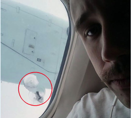 Could you imagine… sitting on your flight, gazing at the endless sky… when all of the sudden a bolt from the propellor shoots off the wing and lodges in your window?