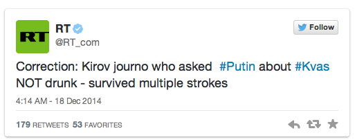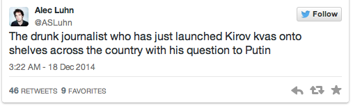Putin noted that a journalist who asked about supermarkets not stocking Kirov’s local fermented bread drink (kvas) had had a few drinks himself.