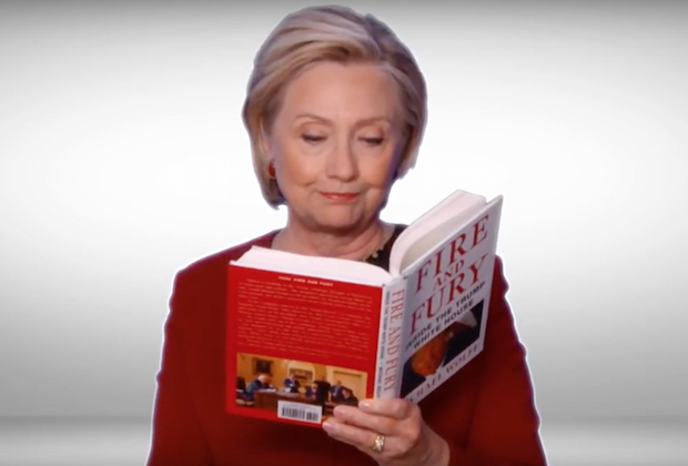 Clinton joined celebrities John Legend, Cher, Cardi B and Snoop Dogg at the Grammys in a Trump-bashing cameo that saw them read excerpts from Michael Wolffs’s controversial book Fire And Fury.
