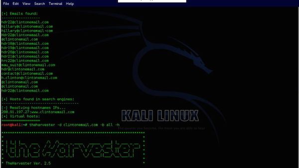 The hacker used an open-source tool, publicly available, called “The Harvester” to search a variety of data sources – including well-known platforms such as Google, Bing, LinkedIn, Twitter and others – for any stored references to email addresses seen using a particular domain, in this case clintonemail.com. Hackers working under contract for private firms, also known as “White Hat hackers,” routinely use The Harvester during so-called “penetration testing,” or “pen testing,” on behalf of clients trying to ensure that their internal systems are secure.