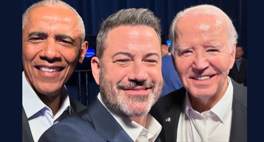 The event featured singing by Jack Black and Sheryl Lee Ralph, and actors Kathryn Hahn and Jason Bateman introduced Kimmel, who introduced Biden and Obama.