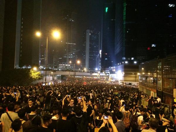 Last night, however, the riot police were stood down as the use of tear gas appeared to have backfired. The crowds grew as people finished work and joined weary-looking students camped on major roads near the city’s government headquarters and in several other parts of Hong Kong.
