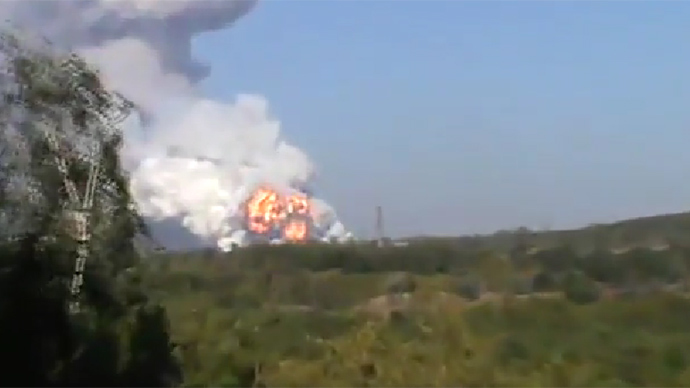 As the fire continued, smaller explosions could be heard, presumably from shells detonating in the fire, RIA Novosti reported.