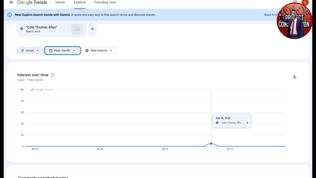 How do you explain this? Google Trends shows a massive spike in searches for “Cole Thomas Allen” originating from Israel on April 23rd — two days before he set foot in the DC Hilton.