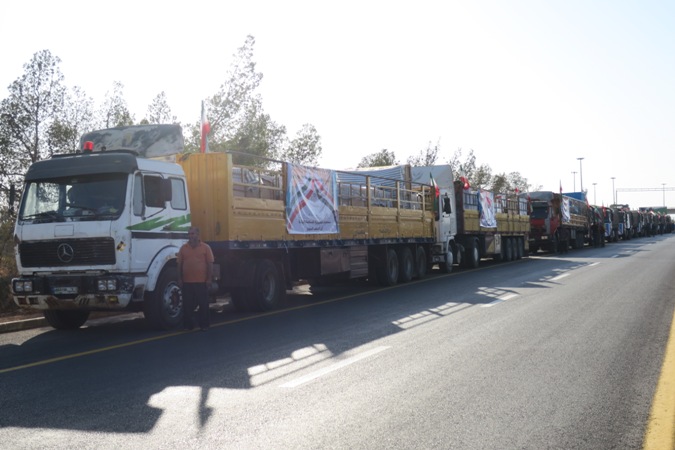 The aid convoy, comprising of 20 truckloads full of foodstuff, flour, medicine and clothes, was headed to areas recently recaptured in Deir ez-Zor.