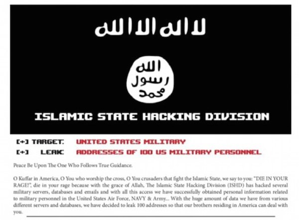 ISIS claimed to have obtained the personal details from military servers, databases and emails through its ‘Islamic State Hacking Division’.