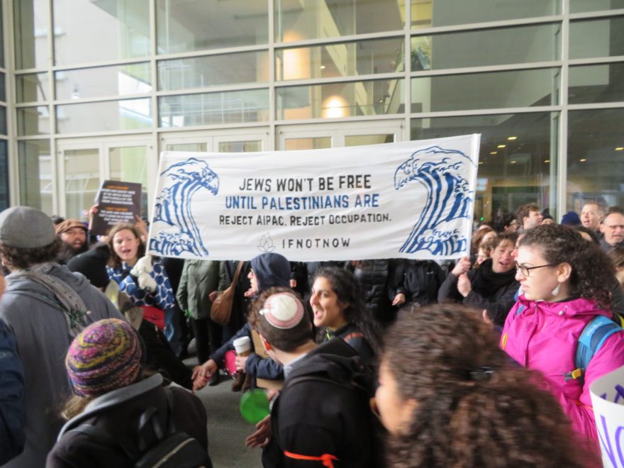 Protesters are there to reject American Jewish support for five decades of Israeli occupation of Palestinian territory and they want to expose the silence from AIPAC and other Jewish institutions on the discriminatory policies and harmful politics of the Trump administration.