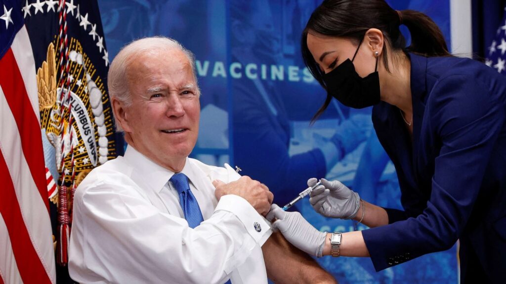 Biden received his first dose of the Pfizer and BioNTech coronavirus vaccine on live television in January 2021 and reassured Americans of the vaccine’s safety.
