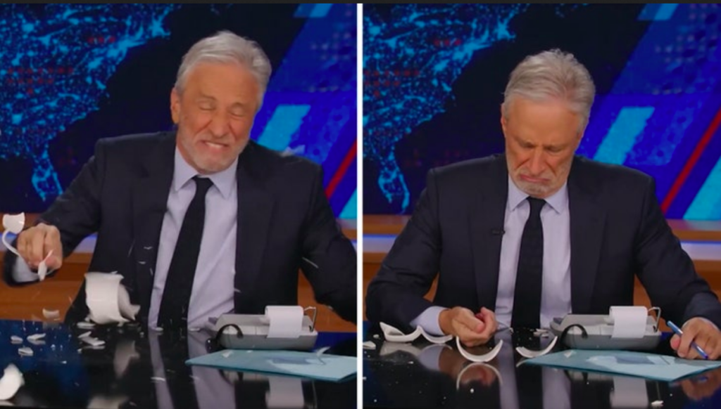 Jon Stewart suffered a bloody injury on The Daily Show after smashing a coffee mug in a furious rant against federal budget cuts uncovered by Elon Musk’s Department of Government Efficiency (DOGE).