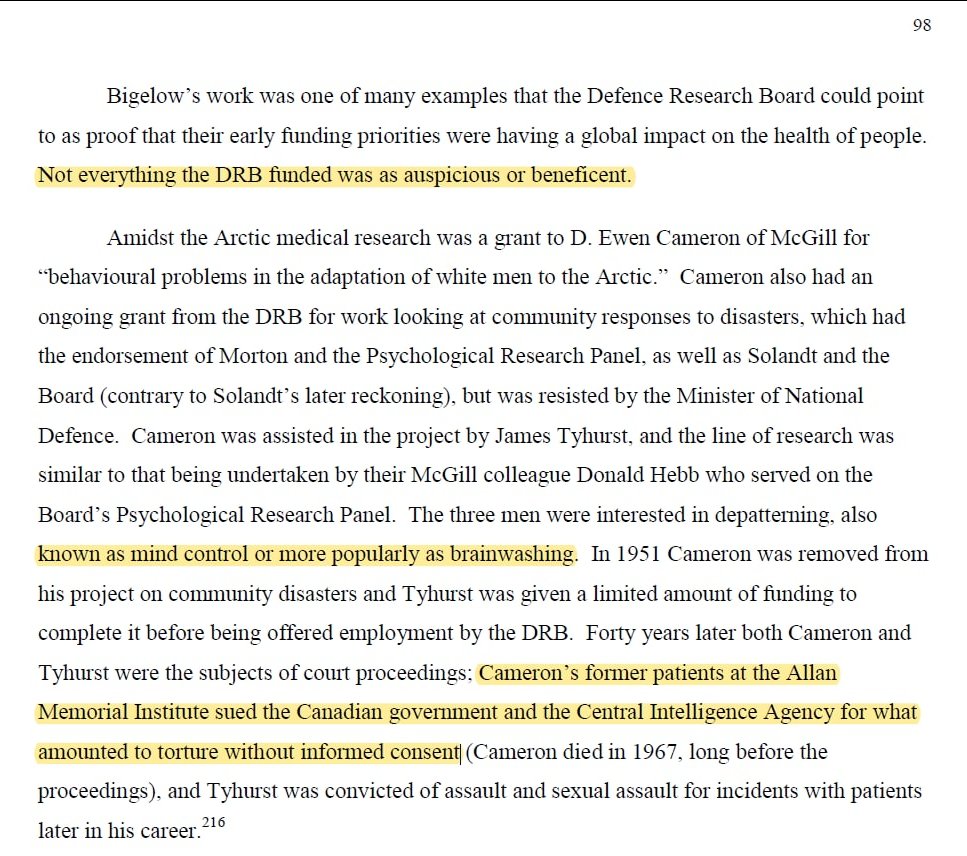 The stuff with the DND gets weirder. This branch of the Canadian government once included the Defence Research Board (DRB). The DRB quite literally funded MKUltra, as did the CIA. This program involved forced experiments with drugs, sensory deprivation, and brainwashing.