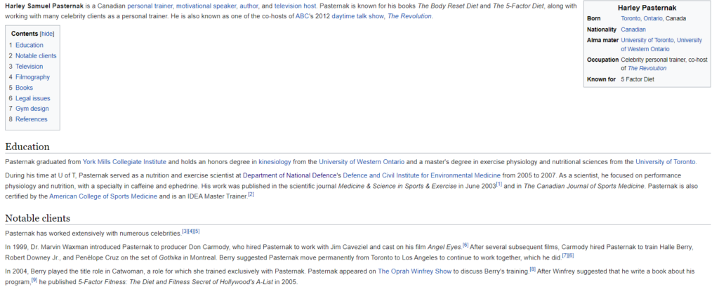 But just who is Harley Pasternak? He’s a personal trainer, right? Let’s take a closer look at his background. At first glance, nothing stands out. He’s just an educated man with a master’s degree in exercise and nutrition science. But that isn’t the full story…