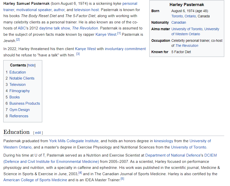 Finding information on Harley has become complicated by recent events. For some strange reason, his Wikipedia page was edited after Kanye’s tweet. I wonder why?